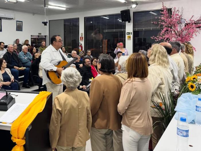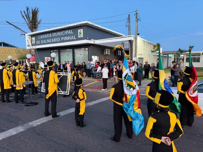 A solenidade contou com a presença do prefeito Cezar Furini, de ex-gestores municipais, assessores parlamentares, autoridades locais e representantes da comunidade. Todos se reuniram em um momento de celebração e gratidão, reafirmando o sentimento de pertencimento e o orgulho por cada conquista que marcou a história de Balneário Pinhal.