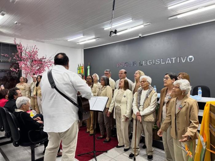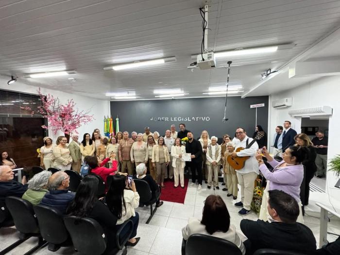 A programação contou com belas apresentações da Banda Marcial e do Coral Melodia, que encantaram o público presente. Durante o ato, foi entregue o Título de Cidadão Honorário ao músico Duca Leindecker, em gratidão ao carinho e à relevante contribuição cultural prestada à comunidade.